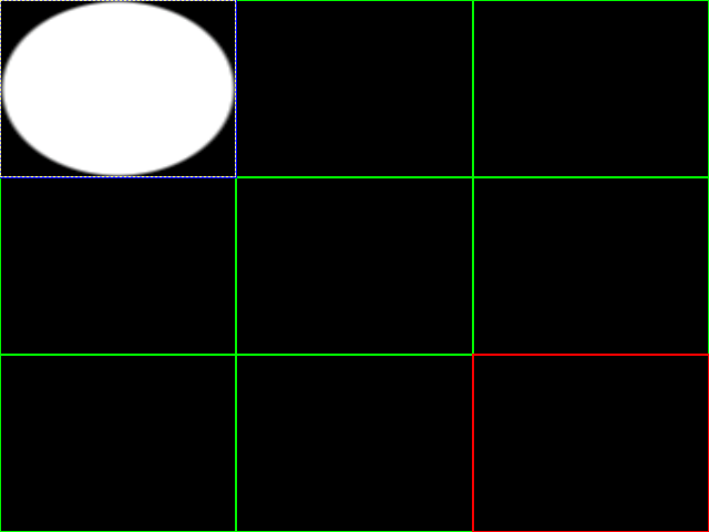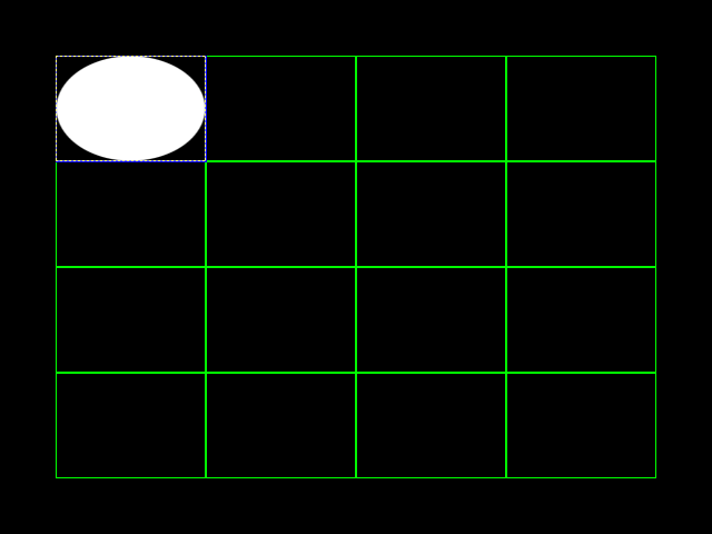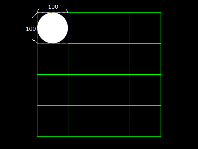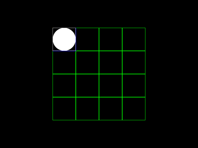 緑がグリッド、青の四角形が現在の位置、赤の四角形が移動先の位置です。