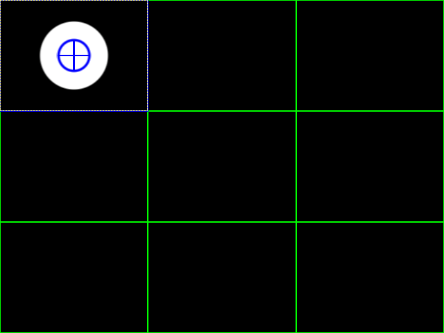 切り抜きが有効の場合、基準となる位置に円と十字を重ねたものが表示されます。
