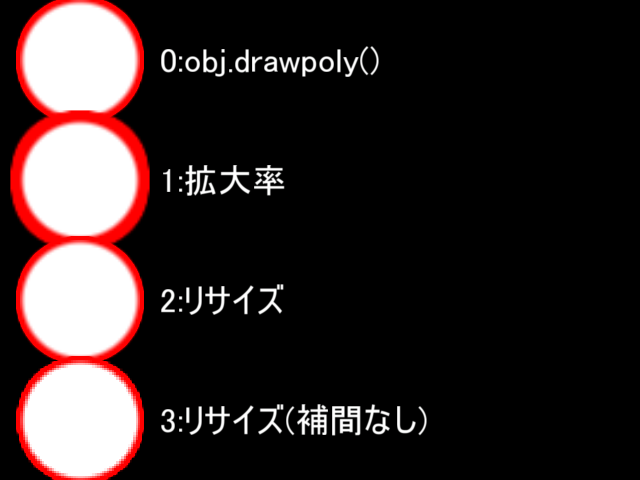 リサイズ<拡大率<obj.drawpoly() (右へ行くほど遅い)